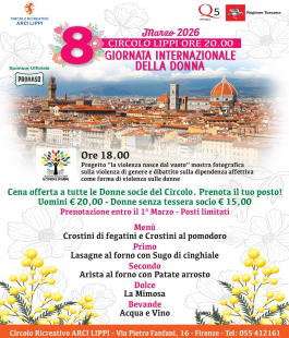 Domenica 8 marzo 2026, dalle ore 18.00, il Circolo Arci Lippi di Firenze, in via Fanfani 16, celebra l'8 marzo con un momento di approfondimento e confronto. Alle ore 18.00 è in programma la presentazione del progetto "La violenza nasce dal vuoto", mostra fotografica sulla violenza di genere realizzata dall'associazione Lo schicco di grano.