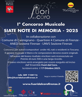 Il concorso “Siate Note di Memoria 2025 è sostenuto da numerosi partner istituzionali e associativi, tra cui il Comune di Carmignano, il Quartiere 4 del Comune di Firenze, ANED Firenze e l’UNVS Firenze.
