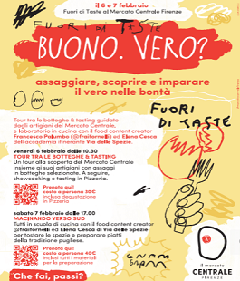 Sempre nell’ambito di Fuoriditaste, il Mercato Centrale Firenze il 7 febbraio dalle 17 alle 20 ospita anche il Laboratorio di cucina "Macinando verso sud", guidato da Francesco Palumbo insieme a Elena Cesca di Via delle Spezie. Il laboratorio propone un viaggio nei sapori della tradizione pugliese, con la preparazione di cavatelli con cime di rapa, peperoncino e tarallo, hummus di ceci con crostini, rosmarino e cumino tostato, taralli alla curcuma e pepe. In accompagnamento, Elena Cesca insegnerà i metodi di tostatura delle spezie. Ogni partecipante realizzerà le ricette partendo dagli ingredienti base, fino alla cottura finale, con la possibilità di portare a casa le proprie preparazioni. Il laboratorio, realizzato in collaborazione con l’influencer Francesco Palumbo e Via delle Spezie, ha un costo di 40 euro.