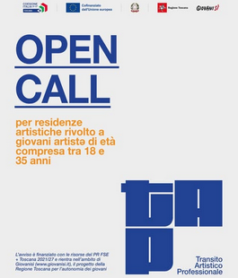 Al via la open call di TAP | Transito Artistico Professionale, un percorso di Residenza Artistica gratuito per giovani dai 18 ai 35 anni compiuti promosso da quattro diverse realtà toscane dello spettacolo dal vivo.