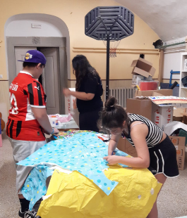 I bambini e ragazzi del Centro Pinocchio stanno lavorando alla realizzazione di questo spettacolo da diversi mesi. Hanno imparato le battute, i dialoghi, le scenografie e i costumi insieme all’artista Patrizia Morini.