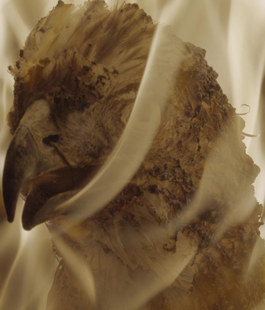 Il titolo del progetto Bones of Tomorrow (ossa del domani) richiama la presenza di ciò che non è ancora visibile, di qualcosa che sta prendendo forma. Le “ossa” rappresentano ciò che rimane nel tempo: tracce materiali e memorie che sopravvivono alla vita. Unite a “Tomorrow”, suggeriscono che il futuro non nasce dal nulla, ma si costruisce a partire da ciò che resta, dai frammenti e dalle eredità che ci accompagnano. La mostra esplora proprio questa tensione tra permanenza e trasformazione, in cui l’assenza diventa parte integrante della presenza e i resti si intrecciano con ciò che deve ancora accadere. Frutti in decomposizione, recinzioni acuminate, fiori e animali in fiamme raccontano una realtà inafferrabile, in costante mutamento, dove diversi piani temporali si sovrappongono e ogni forma di vita si trasforma in un’altra.