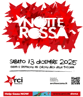 Saranno più di 300 gli eventi inseriti nell'ambito della Notte Rossa di Arci Toscana, l'evento identitario che raccoglie ogni anno la moltitudine di eventi realizzati dai circoli Arci e comitati della Toscana. Fermo restando il carattere generalista della tipologia degli eventi, quest’anno Arci Toscana ha voluto caratterizzare la Notte Rossa con due temi: la musica live e i diritti creativi giovanili e la situazione drammatica in Palestina e in particolare a Gaza.