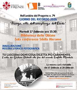 Nel mese di febbraio si celebra il Giorno del Ricordo con un programma di iniziative culturali e di approfondimento storico ospitate dalla Biblioteca delle Oblate, luogo simbolico della vita culturale cittadina e presidio attivo della memoria del Novecento. Attraverso incontri, presentazioni e una mostra storico-fotografica, la Biblioteca propone momenti di riflessione dedicati alle vicende del confine orientale, dell’esodo giuliano-dalmata e alle complesse eredità lasciate dalla Seconda guerra mondiale.