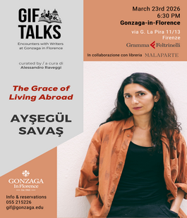 Lunedì 23 marzo 2026, alle ore 18.30, alla Gonzaga University in Florence, in via Giorgio La Pira 11/13, arriva il nuovo appuntamento con GIF Talks: Incontri internazionali con scrittori a Firenze, a cura dello scrittore e professore Alessandro Raveggi. Questa edizione, l’undicesima, dopo il passaggio negli anni di autori pluripremiati del calibro di Mathias Énard, Geoff Dyer, Cristina Rivera Garza e Andrew Miller, vedrà la presenza dell’autrice turca Ayşegül Savaş in un dialogo con Raveggi, in collaborazione con Feltrinelli Gramma, presenterà il suo ultimo libro "Gli antropologi" (edito da Feltrinelli) valutato miglior libro dell’anno da “The New Yorker”, “Time Magazine”, “Vanity Fair” e “New York Magazine”.