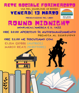 Il genio eccentrico di Thelonious Monk, uno dei pianisti più rivoluzionari della storia del jazz, e la vita straordinaria di Pannonica Rothschild, la celebre “baronessa del jazz”. È al centro del libro "Round Midnight – Monk, Nica, l’America e il jazz" (Odoya) della scrittrice fiorentina Elisa Giobbi, che sarà presentato venerdì 13 marzo 2026 alle ore 21.00 presso la sede sociale di ForiMercato (via del Guarlone 10r, Firenze), in dialogo con lo scrittore Marco Reati.
