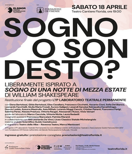 Riscrivere “Sogno di una notte di mezza estate” per raccontare i desideri delle nuove generazioni. Nasce così “Sogno o son desto?”, lo spettacolo liberamente tratto dal capolavoro di William Shakespeare che, sabato 18 aprile 2026 alle 19.00 sul palco del Teatro Cantiere Florida (via Pisana 111R), aprirà alla cittadinanza i risultati del Laboratorio Teatrale Permanente, percorso gratuito di alta formazione a cura di Elsinor Centro di Produzione Teatrale e Associazione Guido Franceschini ODV, realizzato con Fondazione CR Firenze nell’ambito del programma “Adolescenti in scena: il potere educativo di teatro e cinema a scuola”, misura istituzionale con l’obiettivo di potenziare il contributo effettivo dell’educazione alla cultura nella crescita dei giovani, promuovendo il protagonismo dei ragazzi e contrastando il disagio giovanile. Sul palco gli oltre 20 ragazzi e ragazze che nel 2026 hanno preso parte al progetto. “L’amore è il motore della commedia shakespeariana, e proprio l’amore è stato il seme da cui sono partite le domande e il mezzo che abbiamo utilizzato per cercare risposte. Per esprimere ciò che proviamo e non abbandonare il bambino dentro di noi che crede ancora nei sogni e vuole realizzarli”. Così racconta Marco Cacciola, pluripremiato attore e regista alla guida del laboratorio insieme a Laura Redaelli e Vittoria Nicita, attrici e guide della non-scuola del Teatro delle Albe, esperienza di pedagogia teatrale con base a Ravenna e oltre 30 anni di esperienza, modello in Italia e nel mondo (ingresso gratuito, prenotazione consigliata a prenotazioni@teatroflorida.it).