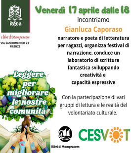 Sarà Gianluca Caporaso, narratore, poeta, organizzatore di festival di ragazzi e di iniziative per mettere in rete le realtà del libro in Italia, il protagonista dell’incontro “Leggere per migliorare le nostre comunità” che venerdì 17 aprile 2026, alle ore 18.00, al Centro Culturale Itaca di Firenze, in via San Domenico 22, l’associazione I Libri di Mompracem ETS organizza con il sostegno di Cesvot, il Centro Servizi Volontariato della Toscana.